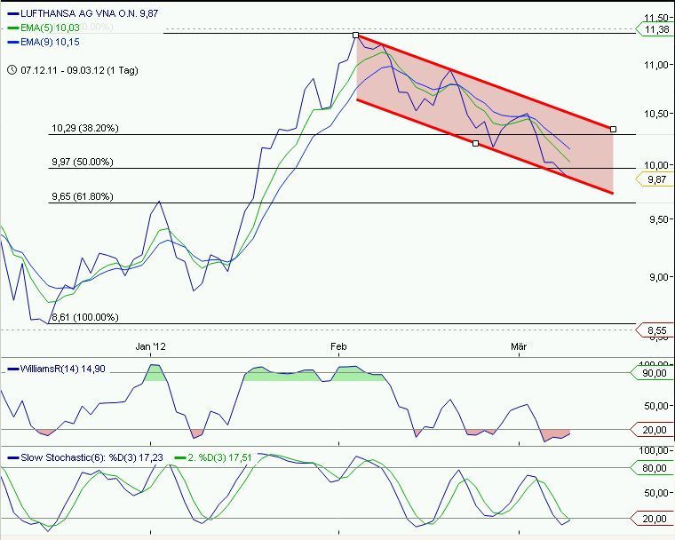 Grundsätzlich wäre auch eine Bestätigung der Trendlinie bei ca. 9.78 denkbar, auch dieser Bereich könnte als Einstieg in Frage kommen.