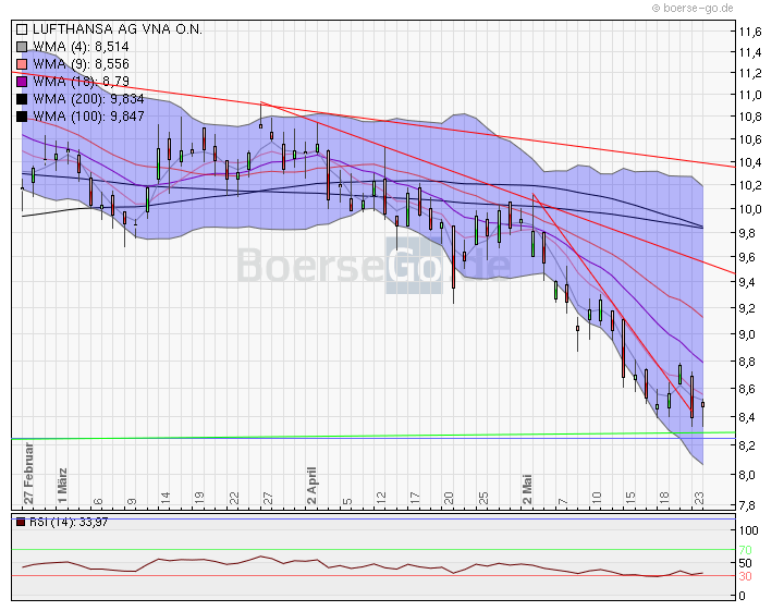 Lufthansa hat zwar noch kein neues Tief gebildet und könnte mit dem derzeitigen Verlauf sogar einen Aufwärtstrend etablieren, jedoch ist hierbei die Frage nach der Wahrscheinlichkeit, wenn der Dax bereits eine neue rote Laterne eingeläutet hat...