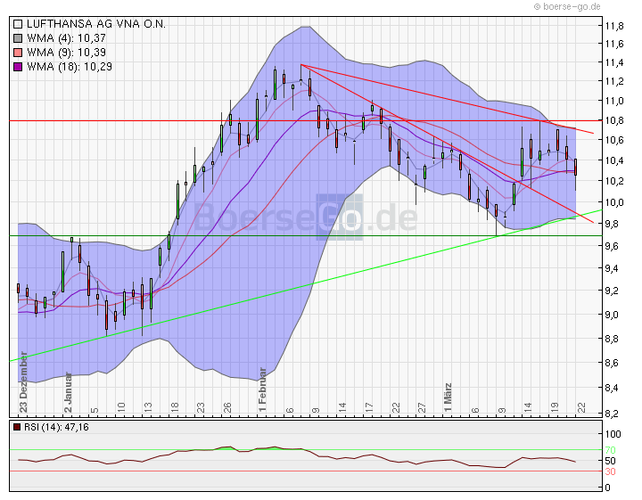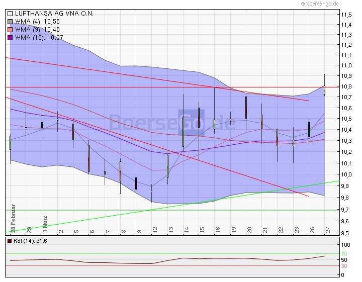 Der Kranich hat noch Platz bis 9,68 ohne seinen Aufwärtstrend zu gefährden. Bei Kursen unter 9,80 werde ich in Erwägung ziehen stärker einzusteigen und stramm abzusichern. Der Verlust ist somit begrenzt und fällt LH unter 9,68 ist voerst auch kein Boden mehr vorhanden.