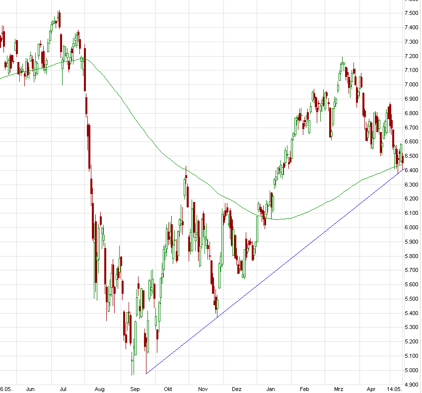 Ok, dass es im Hochsommer so viel Kaufdruck aufkommt, dass man nachhaltig all die Unterstutzungen durchbrechen kann, die sich immer mehr und immer enger um die 10 EUR ballen, ist sicher nicht sehr wahrscheinlich, aber November...?