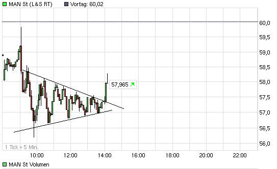 Die Empfehlung habe ich auch ueberhaupt nicht verstanden. Ich sehe MAN mittelfristig als gute Chanch auf Gewinne, insbesondere nach dem Einbruch gestern und heute. hat im Vergleich mit anderen DAX Werten unverhaeltnismaessig viel verloren und wie ich schon oben geschrieben habe ist fundamental nichts verkehrt an der Aktie.