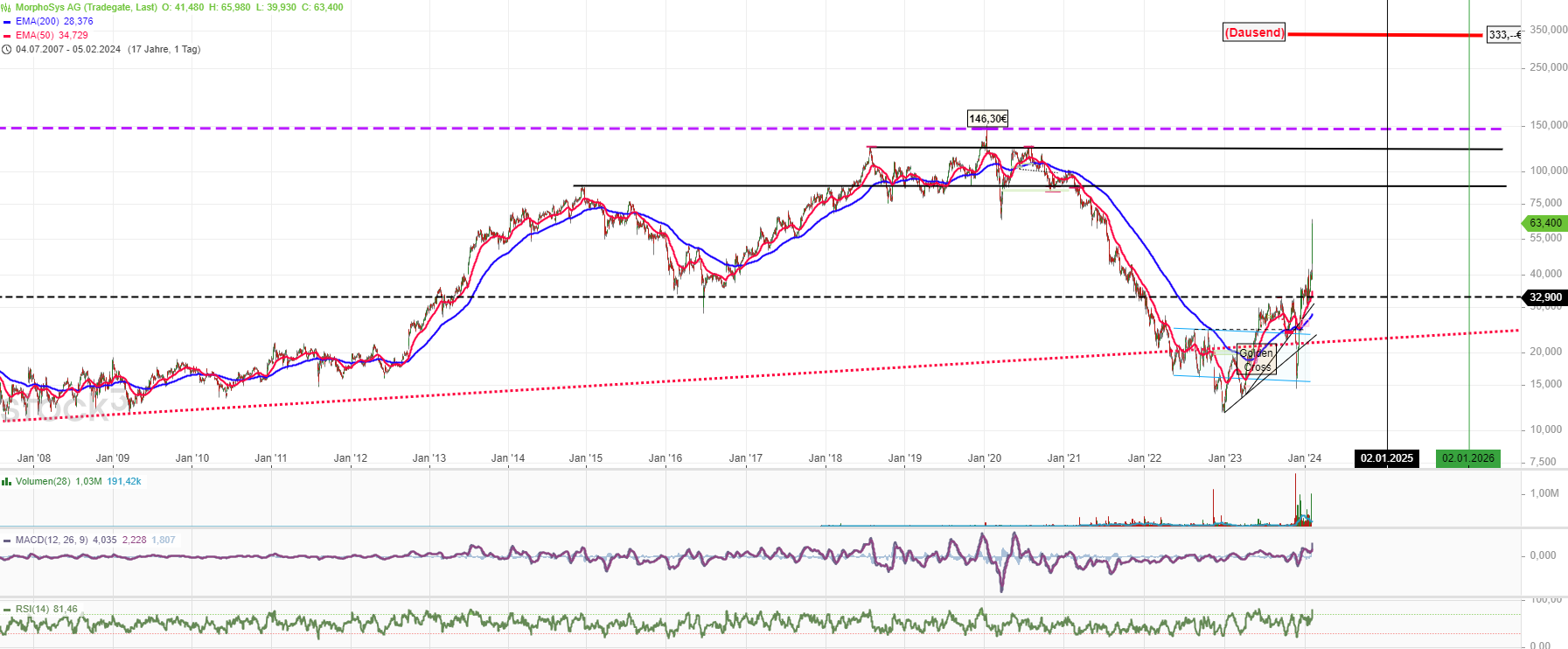 http://www.tradesignalonline.com/ext/edt.ashx/wo/...b054-0469ab84af76 Im negativen, roten Szenario schliesst sich an die hervorragenden Kursgewinne des letzten Halbjahres eine ausgedehnte Konsolidierung an, die durchaus das ganze Jahr dauern könnte. Im positiven Fall kann die Neubewertungsrallye natürlich noch weitergehen. Damit ein Kurs bis 50 zum Jahresende erreicht wird, müssten aber sicher eine ganze Reihe von positiven News gemeldet werden. Aus der Welt ist das aber sicher nicht. Erst letzte Woche meinte Chef Moroney im Unternehmenswert auf 2 bis 3 Milliarden wachsen zu können, was einem Kurs von 80 bis 120 Euro entsprechen würde. Und wenn Moroney das sagt, dann stehen uns sicher spannende Jahre voraus. :-) |
