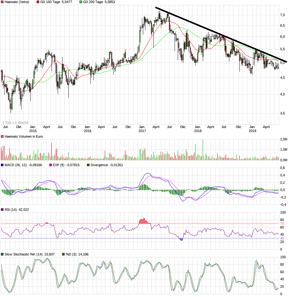 haemato: Könnte Charttechnisch jetzt ersteinmal auf 5,2 runter gehen. Kurs zeigt wenig Stärke .
