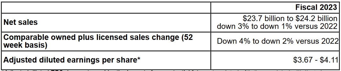 Q4 2022 comparable sales down 3.3% on an owned basis and down 2.7% on an owned-plus-licensed basis;