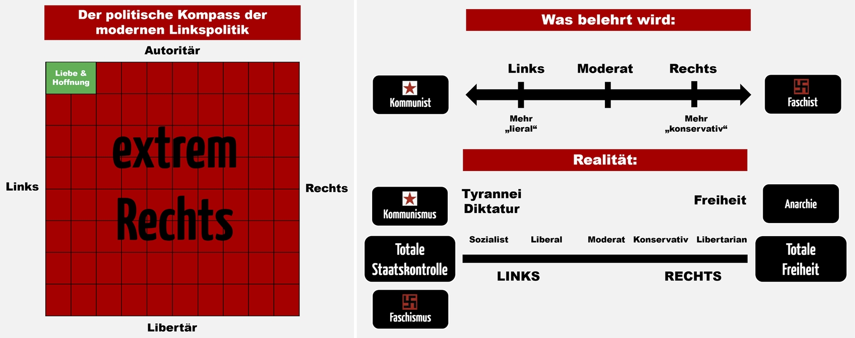 - "Linksnationalismus" gilt für viele als "rechts" und "Linksradikalität" sollte by default "besser" sein (#88971, #145)