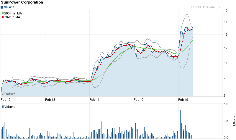 Visibility of Long-Term Revenue - SunPower's utility deals have been the main reason why the stock has gone up from its 52-week low of $3.71 to its 52-week high of ~$10. Investors have liked the fact that almost 33% of its revenue forecast till 2015 is tied up in long-term deals. Even though the Q412 results were below expectations, the long-term visibility gave a big boost to the stock price.