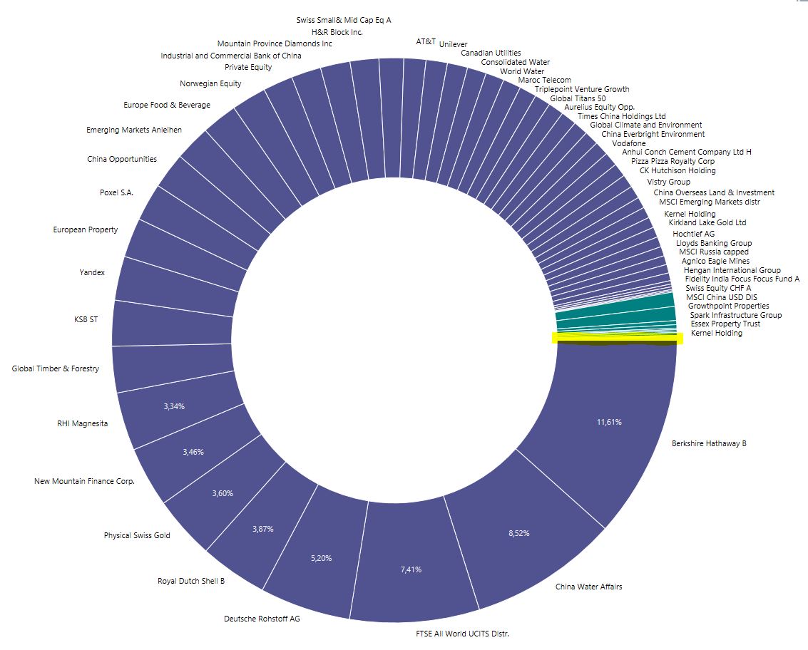 38% ETFs (hauptsächlich Aktien mit einer kleinen Beimischung von Anleihen in Emerging und Frontier Markets)