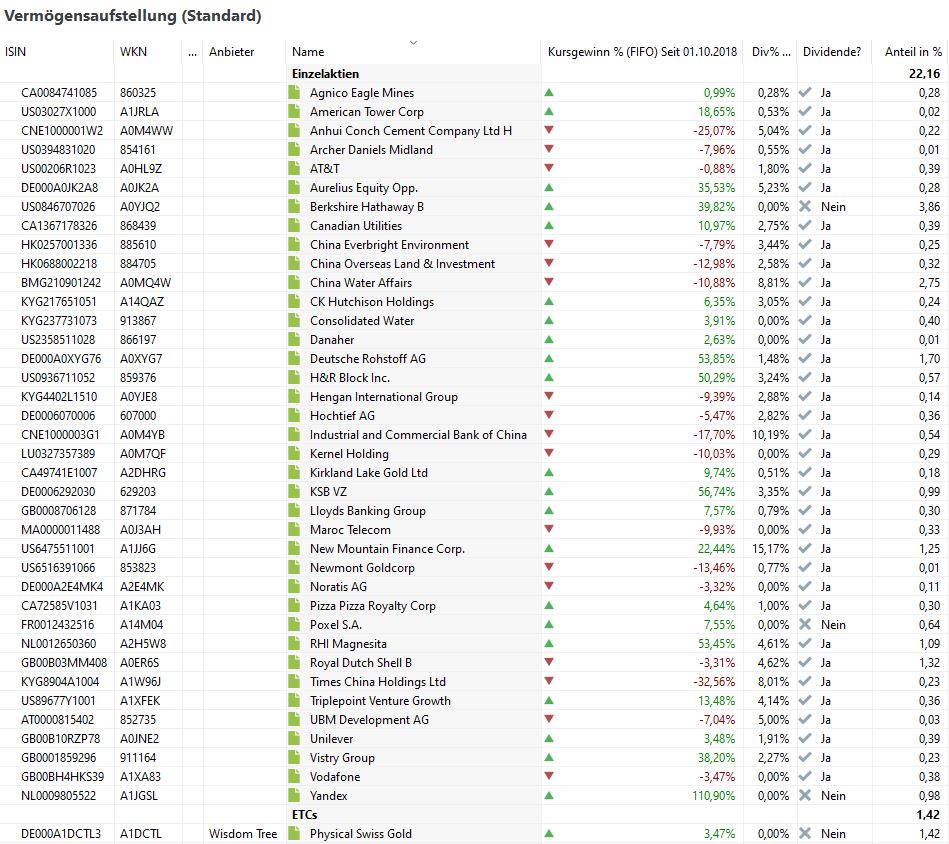 Man sieht jetzt, wie die vor ein paar Monaten vorgenommenen Umstellungen sich auszahlen. Trotz der "Chinakracher" ist das Depot gerade mal um ein halbes Prozent ins Minus gerutscht, was seine Gesamtperformance betrifft.
