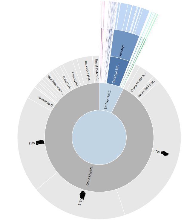 Wie aus Beitrag #105 weiter oben ersichtlich, hatte ich ursprünglich Einzeltitel wie Shell oder Berkshire Hathaway dann dem entsprechenden Unterordner für die Etf/Fonds-Top Holdings zugewiesen. Seit heute ist diese Zuordnung entfernt und ich werde gleich noch ein paar neue Darstellungen posten, die nun wirklich ausschließlich Etf-Holdings enthalten (Der China-Fonds ist ja noch nicht angelaufen).