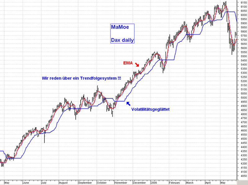Kaufmann hatte versucht mit seinem KAMA einen volatilitätsgeglätteten GD zu schaffen .. . vielleicht solltest du die ganze Sache mal mit dem KAMA durchtesten ...