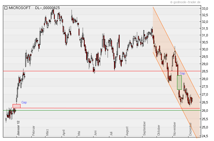 Ich denke wenn Microsoft es wieder auf 28,20$ schafft und das Gap von mitte November schließt, sehen wir den Bruch des Abwärtskanal und die 35$ kann angesteuert werden.