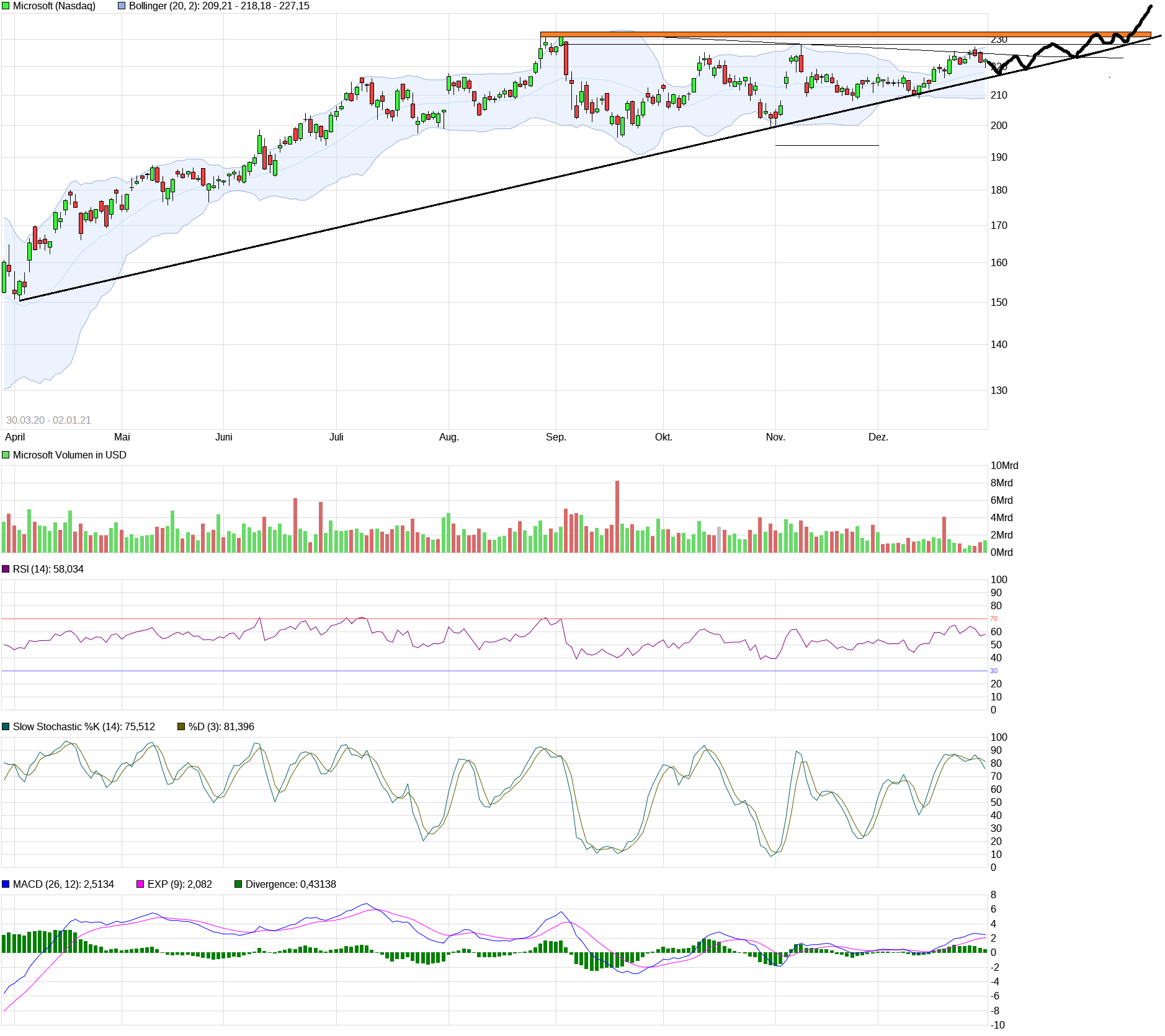 Wenn man sich dann aber doch fragt, so wie ich, warum Microsoft trotz guter Ergebnisse dank Home Office und zunehmender Digitalisierung, seit ca. 6 Monaten seitwärts läuft, dann kann CT evtl. hilfreich sein.