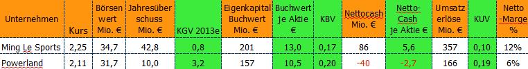 Der Fehler dabei ist nur, dass bei den Deutschchinesen die KBVs vielfach gut sind, aber die Buchwerte oft schnell fallen, wie bei Asian Bamboo beispielsweise, und sich bei dem Falltempo eher dem Aktienkurs annähern als umgekehrt. Bei Gewinnen muss man auch erst einmal abwarten, ob daran nicht ein Testat scheitern wird, weil sie nicht da sind, man sich aber nicht mit Ming LE einig wird, sofern man überhaupt einen Wirtschaftsprüfer findet, bzw. einer durch ein Gericht eingesetzt werden kann. Dann kann aus solch einem niedrigen KGV schnell ein Albtraum werden.