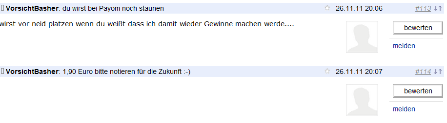 Katjuscha: ach Weltenbummler, ich kann mich noch gut 21.08.12 14:22 #237 erinnern wie du im März 2011 ähnlich marktschreierisch wie heute bei 2,8-3,0 € deine 80000 Aktien gekauft hast und immer meintest, wenns über 3,2 € geht, geht die Post ab. Danach hab ich dann niemals von dir Verkäufe vernommen, sondern du hast bei fallenden Kursen mehrmals zugekauft. Ich mein mich sogar zu erinnern, dass wir mal eine Diskussion hatten, weil du irgendwann bei 1,x € mal angeblich 200000 Stück zugekauft hast. Auch da hab ich von Verkäufen deinerseits danach nichts gelesen.