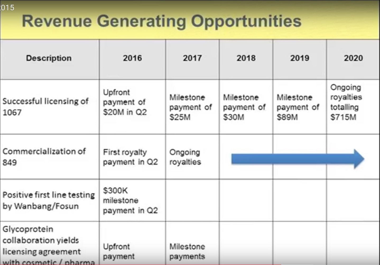 - It assumes royalties start on the anti-diabetes IP in 8 years