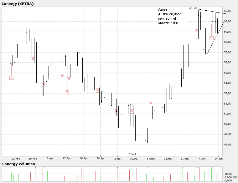 Ich war von Conergy sehr sehr überzeugt, aber die Insider Verkäufe in letzter Zeit haben mich doch verunsichert. Ich habe lange überlegt ob ich verkaufen soll oder nicht, Conergy ist ja super aufgestellt u.s.w aber ich mußte mich immer wider fragen warum wurden in so großen Mengen Aktien verkauft. Der Chart sieht auch nicht mehr so gut aus wie vor 5 Wochen, deswegen verkaufte ich heute den Rest. Für die ersten verkäufe habe ich mir weitere Solarwold Aktien gekauft und für den Rest die ich heute verkauft habe, habe ich mir Ersol Solar gekauft, die stehen kurz vor einen Ausbruch und haben ein KGV in 2008 von nur 13. Ich hoffe es war die Richtige endscheidung aber ich werde weiter Conergy im Auge behalten da ich sehr überzeugt war von Conergy aber das Risiko ist mir zur Zeit zu groß trotz guter Nachrichten kommt sie nicht richtig auf die Beine.