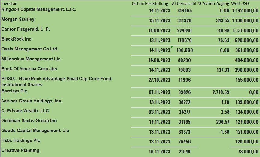 Den Vorteil, den ich in Niocorp sehe, es wird nicht wie MP Materials, von 51% anteilig in der Firma beteiligten institutionellen Anlegern (und eben auch China), gesteuert/manipuliert.