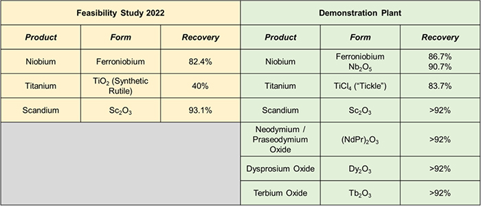 niobium, scandium, and titanium. The Company also is evaluating the potential to