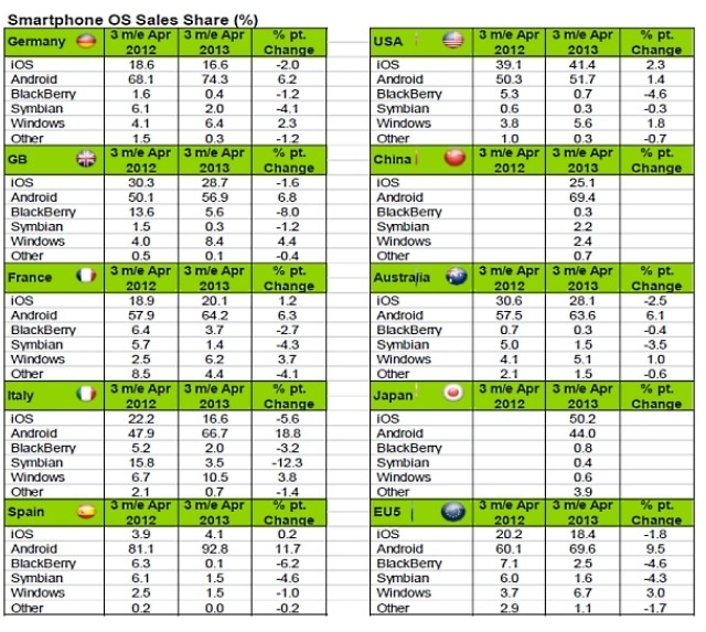 Die Kantarzahlen, die ich gestern und Real1 hier gerade gepostet haben sind Sell-out Shares! Sprich, von 100 Telefon im April waren 6,4 in DE Windows phones.