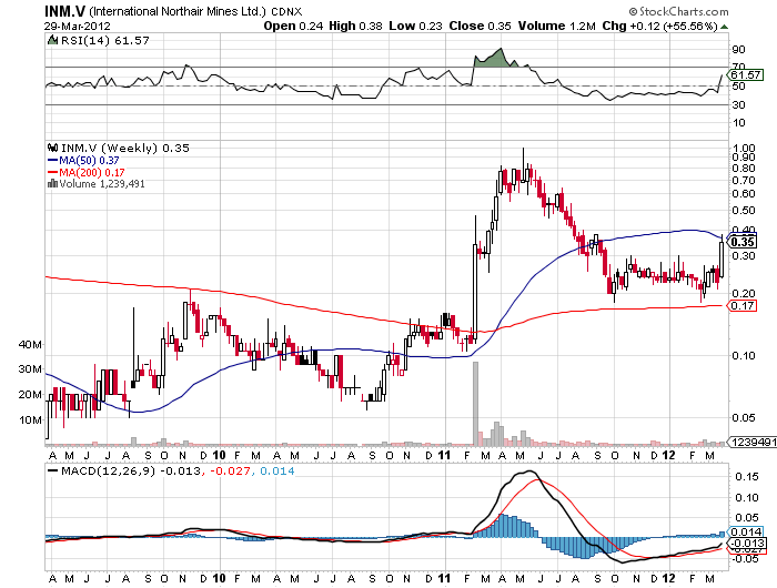 Analyst Michael Fowler of Loewen Ondaatje McCutcheon is forecasting that shares in International Northair Mines Ltd. will surge 300 per cent over the next 12 months. He believes the company should be able to outline an inaugural 70-million-ounce silver resource at its La Cigarra property in Mexico when it releases a resource estimate in the second quarter.