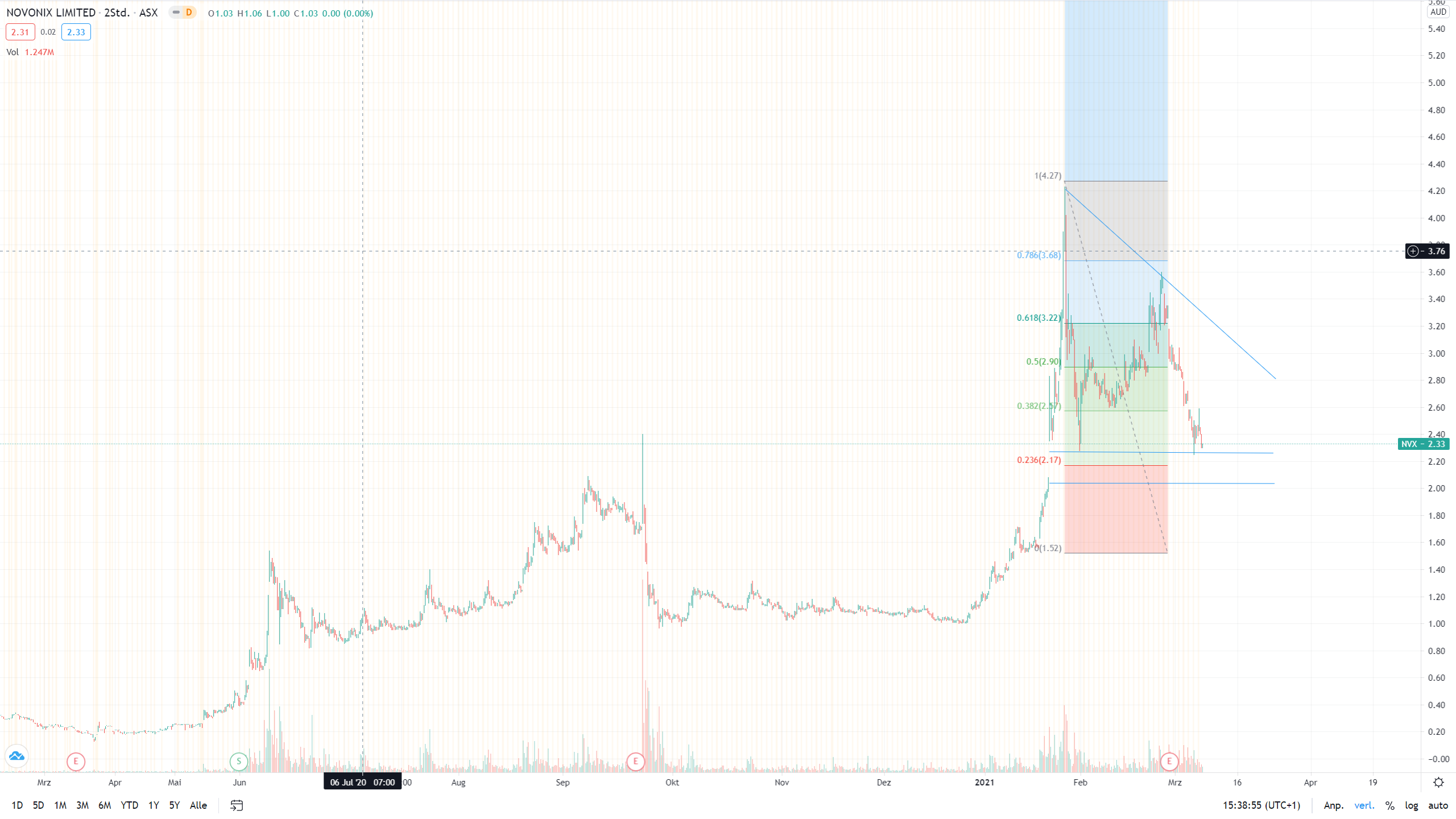 Ich habe NVX seit 0,3/ 0,4€ auf der PS-Liste aber nicht aktiv getradet, weil andere Aktien dafür attraktiver waren, ich habe meine erste Position kurz vor dem letzten Upmove, der erste schien mir nur ein Bluff zu sein, platziert.