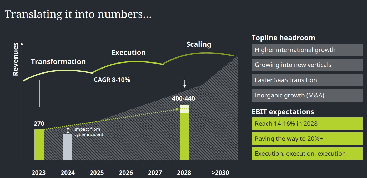 Wenn hier über mögliche Kurse 2028 spekuliert wird, so sollte man Bedenken, dass nach 2028 das Skalieren erst erst so richtig beginnen soll (Folie 40). Sollten die gesteckten Ziele 2028 erreicht worden sein, so wird man hier sicher auch wieder die Zukunft einpreisen. Dann gesteht man PSI vielleicht auch wieder ein KGV von 30 zu. 2025 wird man aber sicher noch richtig viel Geld für die Cloudtransformation in die Hand nehmen. Da sollte man nicht all zu viel erwarten. Und ob man der D&O etwas im Nachgang zum Cybervorfall etwas aus dem Kreuz leiern kann, ist aus der Ferne nur extrem schwer zu beurteilen. Wenn das vor Gericht geht, so kann sich so eine Sachen auch gern über Jahre hinziehen, besonders auch Gerichtsstandort Berlin... Es muss ja einen Grund geben, warum man Schrimpf auf der letzten HV die Entlastung verweigert hat.