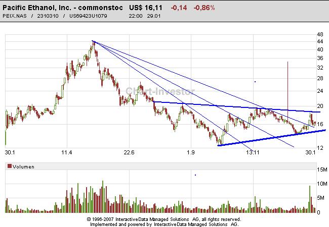 Der RENIXX-World startete freundlich und baute im Laufe des Handelstages seine Gewinne immer weiter aus. Erstmals seit Mai 2006 hat das regenerative Börsenbarometer die Marke von 1000 Punkten wieder übersprungen. Im Fokus standen nach der Rede von US-Präsident Bush „Zur Lage der Nation“ die amerikanischen Bioethanol-Aktien. Bush will die Importabhängigkeit von Öl reduzieren und setzt u.a. auf Bioethanol als Treibstoff-Ersatz. Pacific Ethanol-Aktien stiegen um 13,32 Prozent auf 14,12 Euro, VeraSun Energy um 10,73 Prozent auf 14,35 Euro. Von den Solaraktien stiegen Evergreen Solar um 7,43 Prozent auf 6,22 Euro, vor der chinesischen Suntech Power (+3,78%, 28,02 Euor), SolarWorld (+3,33%, 56,83 Euro) und Conergy (+3,33%, 48,05 Euro).