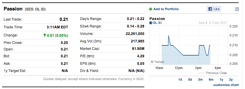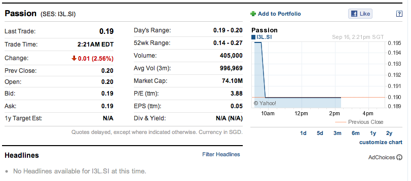 Zeiten bei Passion in Singapur, wenn man die erste Handelswoche außen vor lässt.