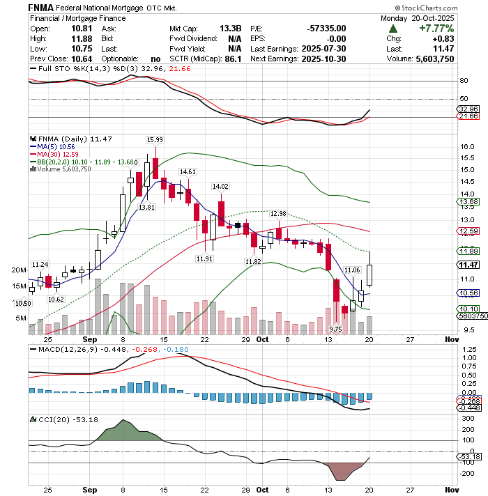 Viel Glück für all die Daytrader, die es nicht richtig geplant haben und es nur Daytrading betreiben und nicht swingtraden. Daytrading FNMA/FMCC ist jetzt eine kleine Kartoffel. Die Inhaber werden bei diesem großen Lauf das meiste Geld verdienen, bis hin zu dreistelligen Werten.
