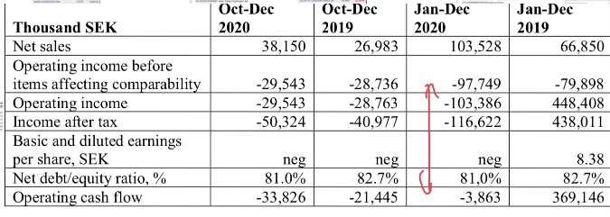 PowerCell Sweden AB grew its sales by 11 percent during the first quarter 2021, from MSEK 26.7 to MSEK 29.7. Operating income before items affecting comparability for the first quarter weakened to MSEK -22.7 (-17.6) mainly driven by operational currency effects and adjusted for these, operating income was basically unchanged at MSEK -22,5 (-22,7).