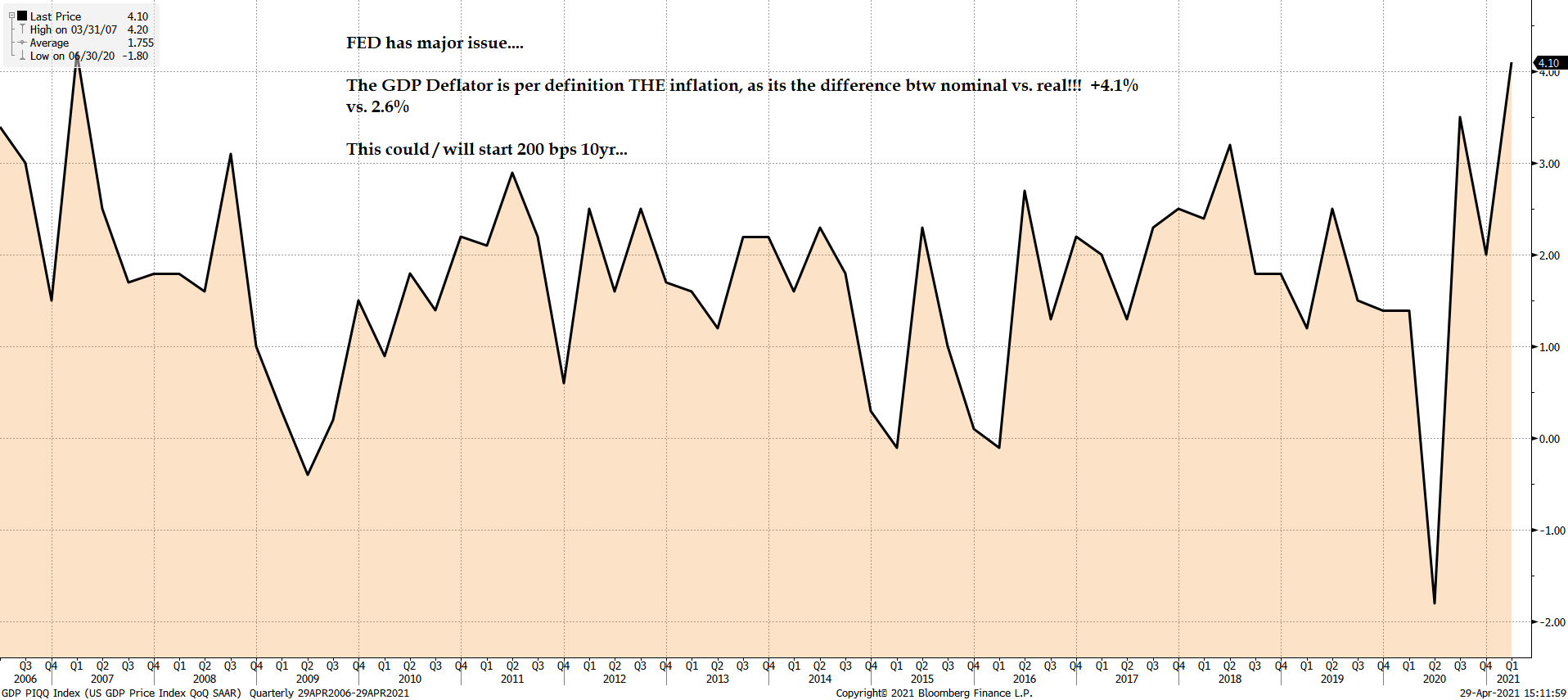 "Die Hütte brennt gewaltig"! Die Inflation ist nicht mehr zu stoppen. Die offizielle Inflationsrate wird in den nächsten zwei Monaten auf über 3,5% vielleicht sogar auf über 4% steigen. Dies wird die Realzinsen massiv in den negativen Bereich pressen und dann beginnt die Beschleunigungsphase beim Gold.
