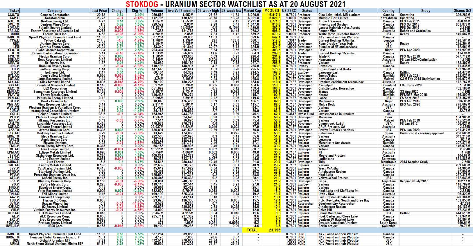 $CCJ ist ein Ticker, von dem Sie wahrscheinlich schon gehört haben, und es ist der einzige mit einer Marktkapitalisierung, die groß genug ist, um direkt erwähnt zu werden.