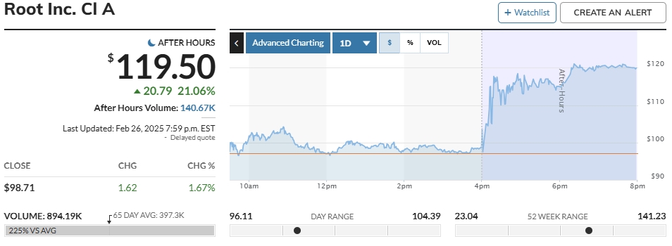 Root erzielte im dritten Quartal einen Gewinn, meldete einen steilen Anstieg der Einnahmen und refinanzierte seinen Laufzeitkredit bei BlackRock, wodurch der Aktienkurs des Unternehmens im Späthandel um 61 % auf 65,15 USD stieg. Die Aktie beendete die reguläre Sitzung am Mittwoch mit einem Plus von 2,3 Prozent bei 40,49 Dollar. Die Aktien, die sich seit Jahresbeginn fast vervierfacht haben, sind in den letzten drei Monaten um 33 Prozent gefallen. Die in Columbus, Ohio, ansässige Muttergesellschaft von Root Insurance meldete einen Gewinn von 22,8 Millionen Dollar oder 1,35 Dollar pro Aktie, verglichen mit einem Verlust von 46,5 Millionen Dollar oder 3,16 Dollar pro Aktie im Vorjahresquartal. Von FactSet befragte Analysten hatten mit einem Verlust von 93 Cent pro Aktie gerechnet. Das Unternehmen verzeichnete einen Quartalsumsatz von 305,7 Millionen Dollar, 165 Prozent mehr als im Vorjahr. Die von FactSet befragten Analysten hatten einen Umsatz von 272,8 Millionen Dollar erwartet. Ebenfalls am Mittwoch refinanzierte Root seinen Laufzeitkredit bei BlackRock, ein Schritt, der dem Unternehmen zufolge seine finanzielle Flexibilität erhöhen und seine Kapitalkosten verbessern wird. Mit Wirkung vom Dienstag besteht der geänderte Kredit aus einem 200 Millionen Dollar langen Laufzeitkredit mit einer Laufzeit von sechs Jahren, wodurch der bisherige Kredit um 100 Millionen Dollar reduziert wird. Das Unternehmen verfüge weiterhin über ein verfügbares Kapital von 150 Millionen Dollar (abzüglich der finanziellen Verpflichtungen im Rahmen der geänderten Kreditlinie), was mit der vorherigen Kreditlinie übereinstimme, hieß es. |