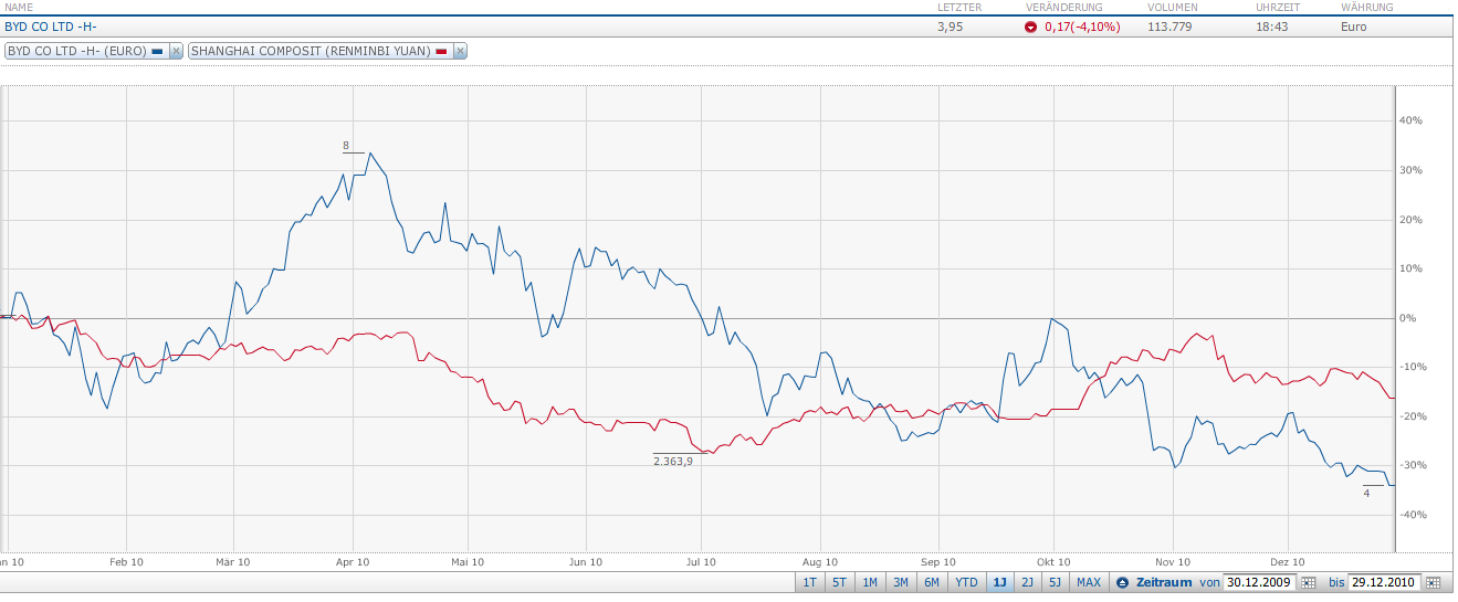 einerseits dürften Teile der negativen news (Absatzzahlen, chery weiter fortgeschritten bei den e-autos) bereits eingepreist sein, andrerseits wenn die Chinesen jetzt mehrere Städte für den Verkauf quasi dicht machen, sind Autowerte für die nächsten Jahre auch nicht das gelbe vom Ei. Infrastrukturverbesserungen dauern schon seine Zeit. Weiters, was passiert, wenn Buffet seine Marie abzieht? Weil immer wieder genannt wird die Chinesen brauchen Autos... na sicher, aber Byd ist nicht die einzige chines. Automarke. Chery hat Byd zuletz bei den e-autos ausgestochen, geely plant ein billigstauto (eine art chines. "Käfer"). Europ. Partner haben auch andere chines. Automobilfirmen, also wieso gerade byd ? Was macht byd so besonders? p.s. überlege hier zu investieren, schaut auf den ersten blick günstig aus jetzt, nur die news sind halt wirklich suboptimal für byd. Jetzt kaufen, oder doch noch warten bis der kurs ev. noch unter 3 fällt? |