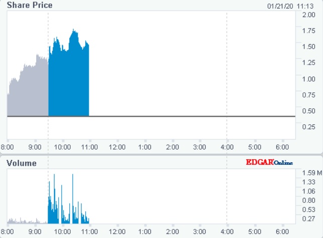 seit Frietag sind die Amis scharf auf diese Aktie.  Interessant ob sie das gleiche schafft wie ibio, apt, codx etc.