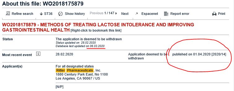 ggf. weil sich bei dem Patent was tut und 1.4 ist hier auch wie bei Biocept die Veröffentlichung geplant