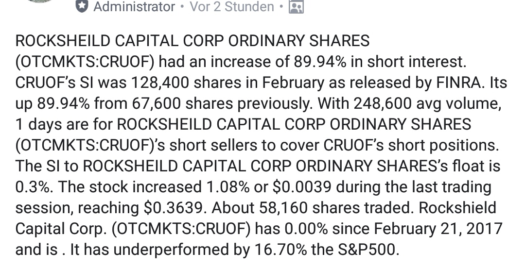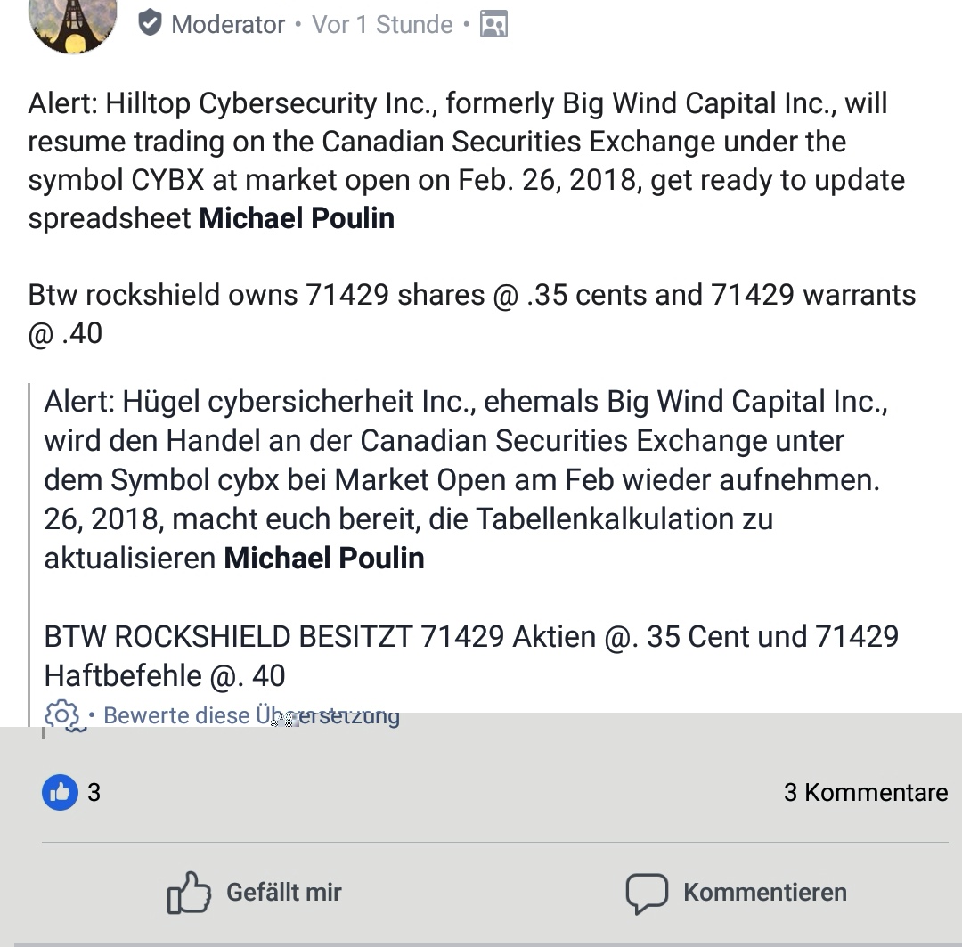 DMG Blockchain wieder 25% im Plus auf aktuell 1,53 CAD Nicht zu vergessen auch Atlas Cloud, die sich seit 05.02.2018 im Trading Halt befindet: "The development of the Company’s business to cryptocurrency mining was deemed a fundamental change under the policies of the Exchange and as a result, the Company will require approval of the Exchange and approval of the Company’s security holders. The Company will also be required to complete a disclosure document in support of the change of business."