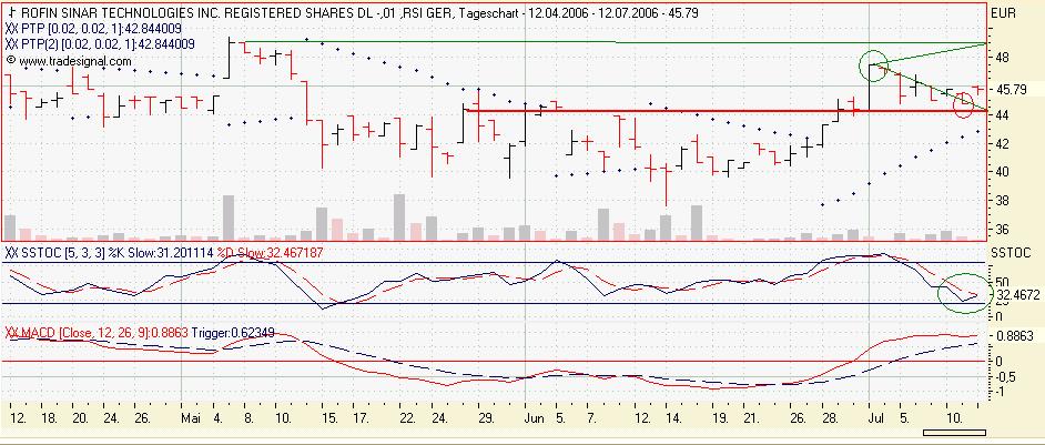 #78 Rofin Call spekulativ? Support 44,20 Stoch unte.