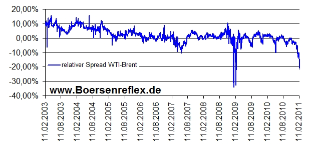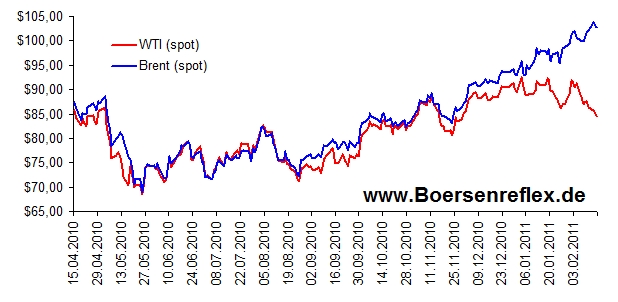 Rohöl: Brent über 100$, WTI unter 90$