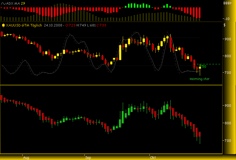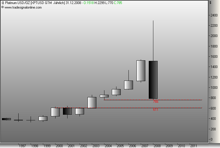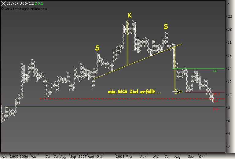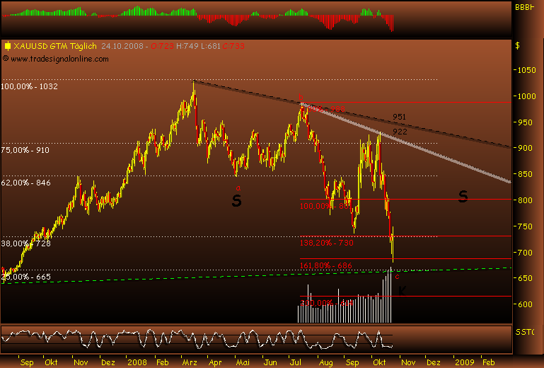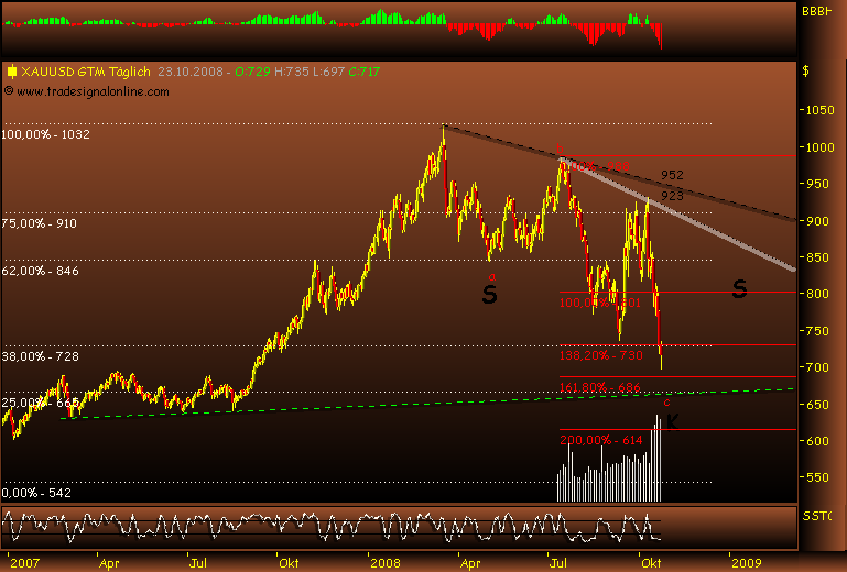 Es spricht einiges für letzteres, weswegen ich auch zun denen gehöre, die jedem dringendst raten GOLD zu kaufen. Der Goldpreis ist wieder günstig undwird derzeit durch shortpositionen vonMarktteilnehmern massiv nach unten getrieben, was dem wahren Spiel von Angebot und Nachfrage keinesfalls gerecht wird. Wir werden bei Gold einen gewaltigen Anstieg in sehr kurzer Zeit sehen, wenn sich der "Deckel nicht mehr auf die sprudelnde Quelle" halten lässt und da stehenwir trotz allem anderen Geschwätz kurz bevor. Ich habe mir auch für die nächsten 20 Jahre für 20.000 Euro Gold ins Schließfach gelegt, das ist im übrigen auch mE eine gutes Altersversorgung, klar schwankt der Goldpreis, aber das Angebot wird immer knapper, die Reserven knapper, allein das sorgt unabhängig von kurzfristigen Downspekulátionen, die man einfach ignorieren muss, für einen Goldpreis von Minimum 3000 $ in 20 Jahren. Den ersten starken Schub werden wir in kurzer Zeit sehen, dann sehen wir die Stände um 1000 $. Der Goldpreis hat rein gar nichts mit dem Ölpreis zu tun, Gold wird zukünftig eine Art Residualwährung werden, dh, die Bedeutung von Schmuck wird abgelöst durch die Betrachtung von Gold als sicherstes Zahlungsmittel der Welt. Wenn die Zinsen jetzt auch noch massiv gesenkt werden, dann hat man nicht mal Oppotunitätskosten in Form von entgangenen Zinsen.