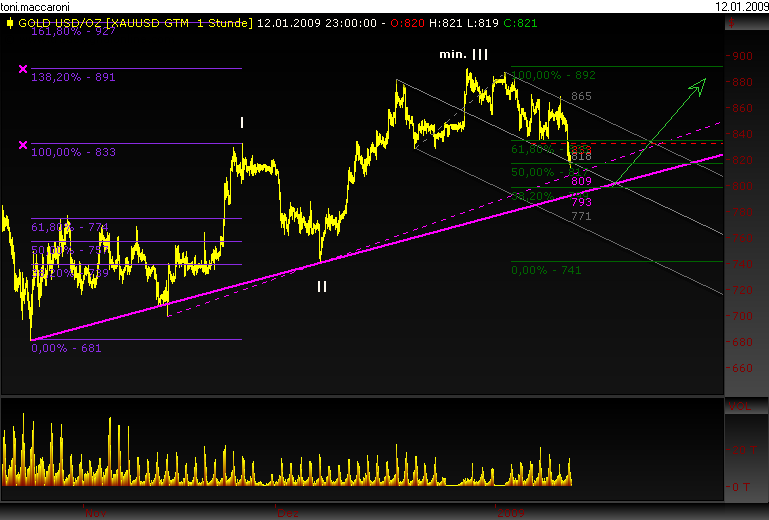 es liegen 3 moves vor die immer bis zur 38,2% marke korregiert wurden, dementsprechend kann man erahnen das es für die goldgräber nicht gut ist wenn die 880$ reizen