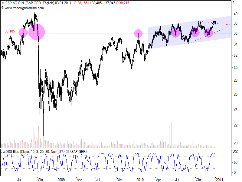 Wir erinneren uns: SAP stand vor einigen Jahren schon einmal bei 42 € und ist danach wieder zurückgefallen und erst wieder vor kurzem gestiegen.