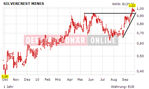 Silberjuwel im Angebot Der Produktionsstart des Santa-Elena-Projekts dürfte der Aktie kräftig Auftrieb verleihen. Bei Erreichen der vollen Produktionsrate im kommenden Jahr sollten die Kassen so richtig klingeln. Mit einem 2011er-KGV von nur 9 ist der Wert extrem günstig bewertet. Aufgrund der Marktenge sollten Anleger allerdings unbedingt limitiert ordern.