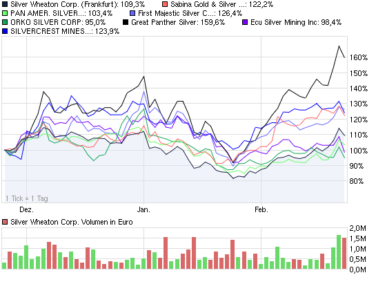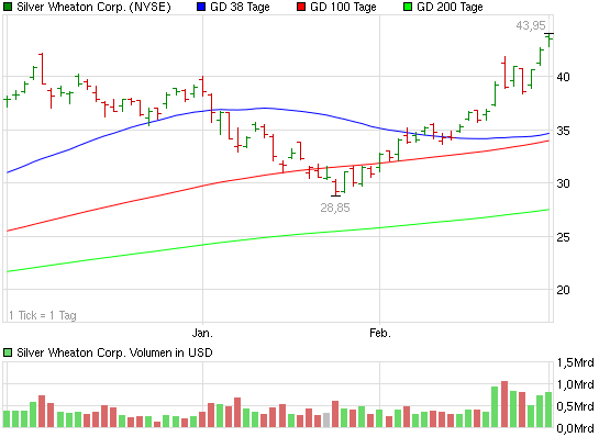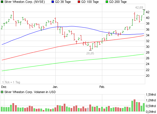 Silber wird noch viel weiter steigen wir werden dieses Jahr noch die 60 Dollar sehen .... ihr werdets sehen und bei Silver Wheaton ist alles drin open End
