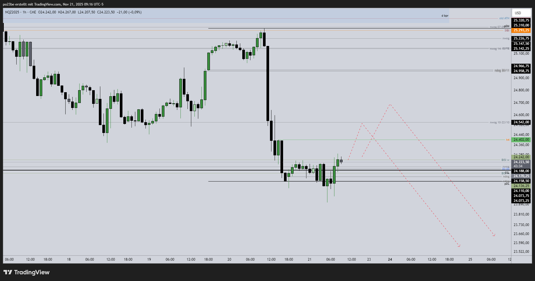 mir wäre ja lieber er scheitert schon am freitags high - zone 23.600 ist er ja schon zweimal gescheitert. kann gerne unterhalb etwas das profil füllen und dann idealerweise abwärts richtung 23k.