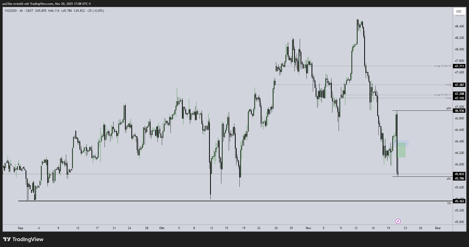 So starke Bewegungen sind immer schwierig zu beurteilen. So auch der Taucher vom 10.10. oder vom letzten Donnerstag. Am Do ging es vom Top praktisch ungebremst nach unten, so dass man den gelben Bereich auch bis zum Top hochziehen könnte.