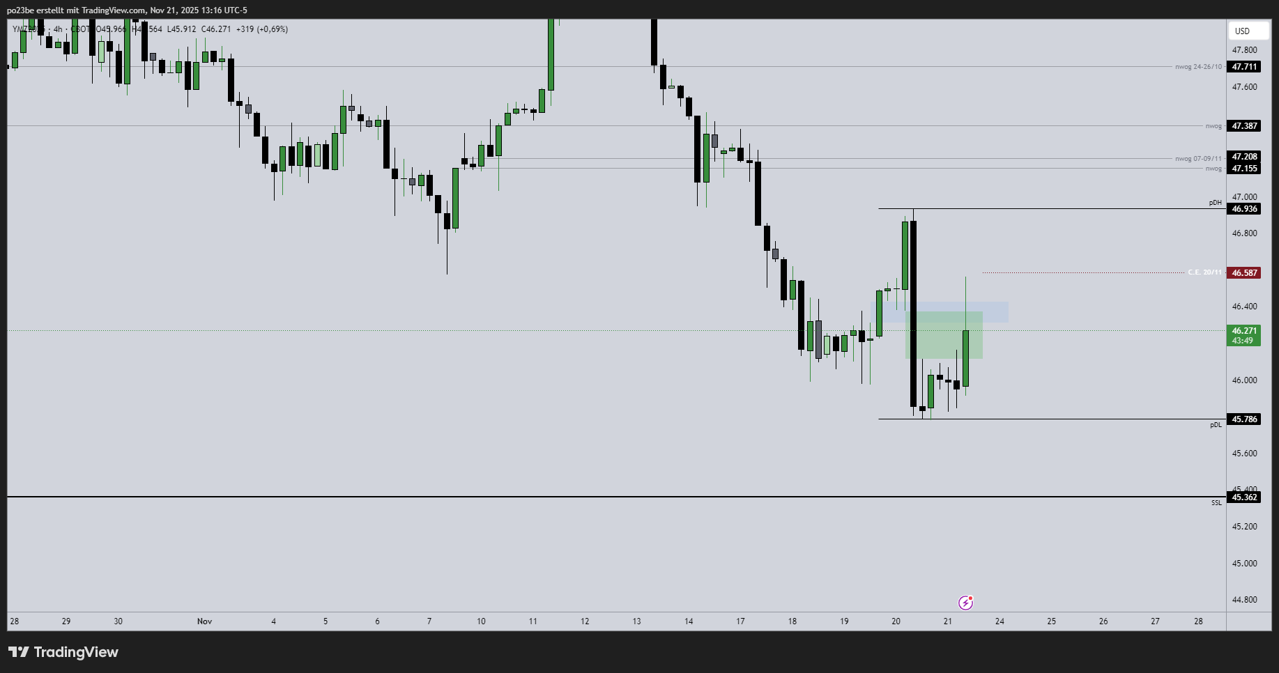 Das overnight Tief wurde in der RTH nochmals getestet. Der grüne Block wurde erst mal nach unten durchbrochen, ging dann beim Anstieg direkt hindurch. Somit ist dies für mich die erste Support-Zone. Weiter unten ist noch der blaue Bereich, welcher auch noch mal getestet werden könnte.