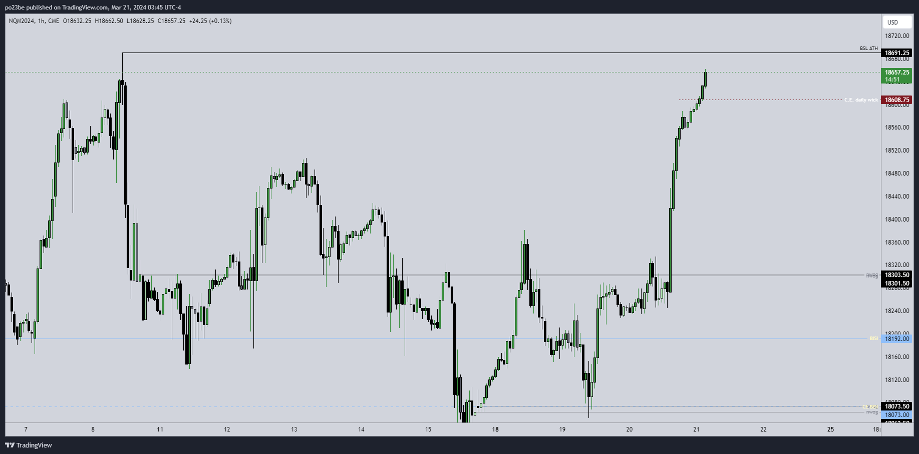 beim ES ganz "einfach" betrachtet..  er macht higher highs und higher lows. Und die equal highs scheinen mir derzeit wahrscheinlicher, als dass er abstürzt. Welches Hoch bzw Tief kann er mit dem geringstmöglichen Aufwand nehmen.. Da scheinen mi dir die equal highs derzeit wahrscheinlicher und über einem ATH sind viele Stops.