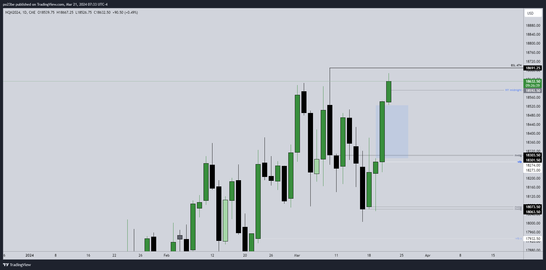er hält sich hier oben auf bzw gibt noch ein wenig nach und läuft morgen in das daily FVG und von dort dann über das ATH