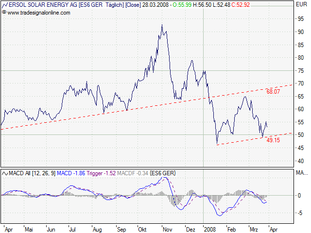 Nach Meinung der Experten der "Prior Börse" besitzt die Aktie von ersol Solar Energy ein Kurspotenzial bis 85 Euro.